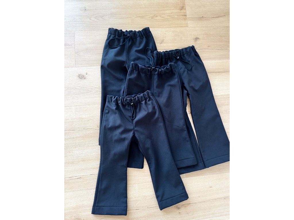 Černé softshell kalhoty šité v České republice, které se skvěle hodí k našim bundičkám. Kalhoty mají volnější zvonový střih, díky kterému jsou nejen pohodlné, ale také velmi stylové.