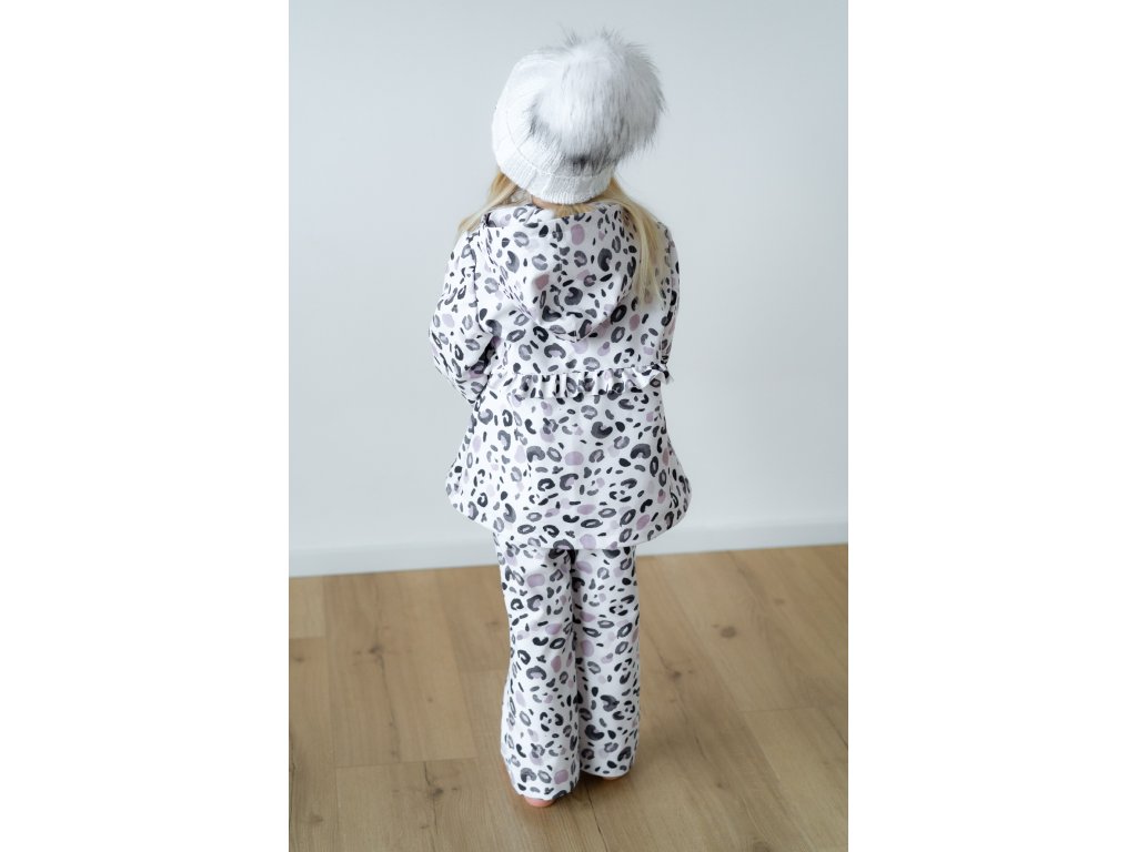 Leopardí vzor je navíc velmi praktický, drobné zašpinění na něm není tolik vidět jako na čistě jednobarevné bundičce. Stejný vzor můžete sladit i s kalhotami do setu.